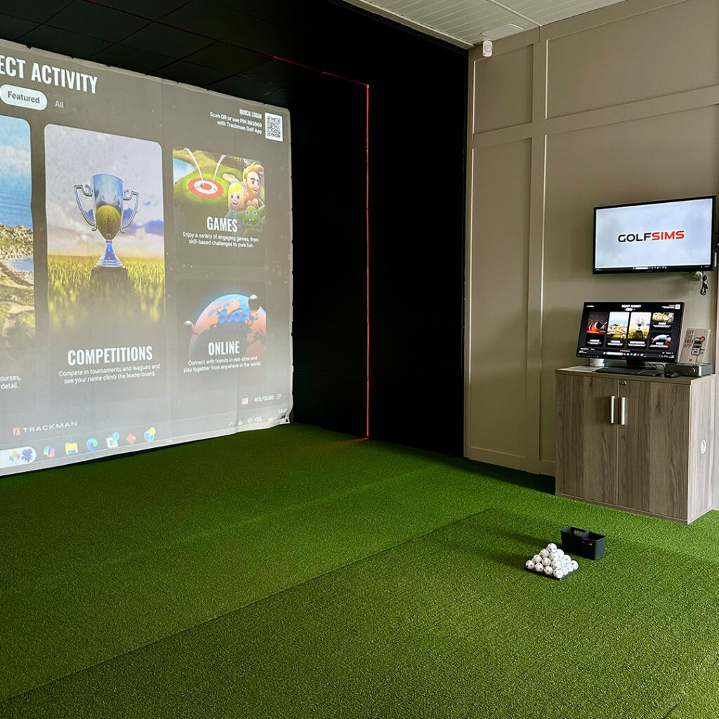 Our GOLF SIMS are high-tech, indoor gol simulators that let you play the game on world-famous courses, without leaving Cambridge. Using advanced sensors and tracking technology, they capture every detail of your swing, from club speed to spin, and then project your shot onto a screen. It feels just like being out on the fairways, but with all the comfort of being indoors.
